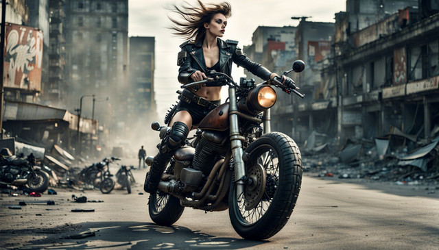#biker #bikergirl #femalecharacter #mercenary #postapocalypse #postapocalyptic #scavenger #survivor #postapocalypticworld #aiart #postapocalypticart #postapocalypticcharacter #ai_artwork #ai_community #leonardoai #leonardo_ai #leonardoaiart