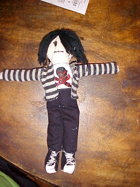 He was the most bloodthirsty of ALL of the mini dolls I've made so far. I now have to make a deviant and her partner, then Black Parade Gerard, then on to the other cushions, and any other characters I can be bothered with making.