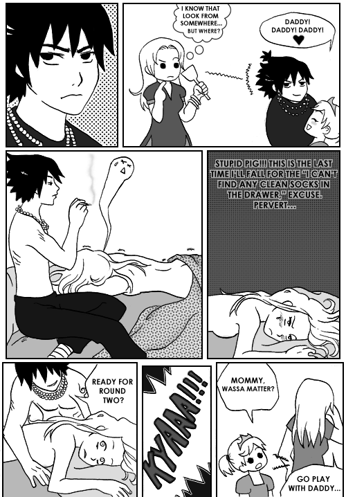 And that is how Sasuke repopulated the Uchiha clan, after screwing Naruto for over 20 years. It makes me want to barf just thinking of it.