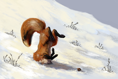 Have you see a video on Youtube about fox hunting for mouse? Fox jumping high and falling into snow like on the picture.