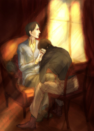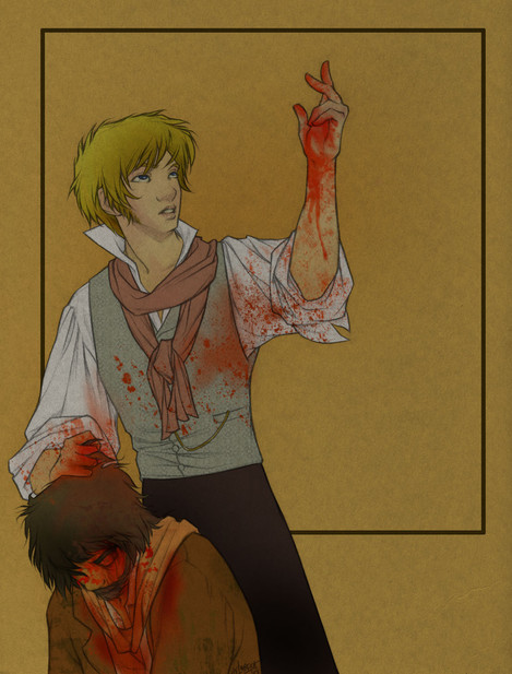 Love this picture - but what is Morris doing??? Ah, I just love all the emotions and plot you get in one picture. Lester's face of pain is so real, and Morris' creepy, almost tender, smile is brilliant as well. I hope we get more updates on the plot! I spent a day going through all your art, and then I had to go through it all again to appreciate all the characters and quotes.