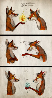 fuchs: *grins* "du vergisst, du redest hier mit einem fuchs, welcher von vielen menschen als unehrlich bezeichnet wird, wobei ich trotzdem ehrlich sagen kann, dass diese aussage unehrlich ist; ehrlich!"