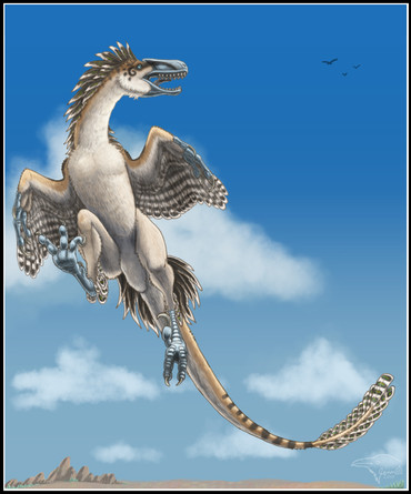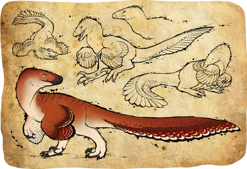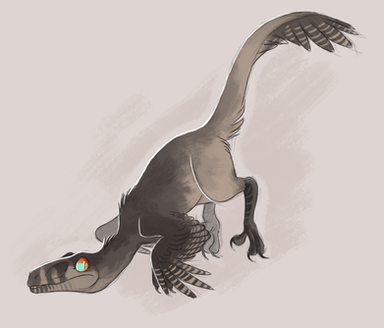 My favorite dinosaur! I will always love them! I loved them since I saw them on Jurassic Park when I was little and loved them even when we figured out they had feathers. Of course I loved what they did and how they hunted in packs and were smart over how they looked anyways. Anywho...Great job on the feathers and colors. This is one of the first pictures I've seen that displays raptors in a more playful, everyday life than the wicked awesome hunters that they are.Β