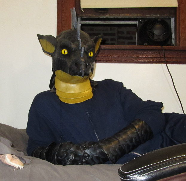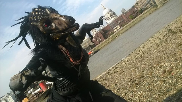 A dinosaur's attempt at taking a selfie, or the last thing a biologist saw before he was eaten? Either way, you'll be seeing a lot more of this beastie very soon.(I must point out that this is NOT MY WORK - I commissioned this costume from un-do a few years ago and received it in June this year.)