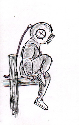 i love the fish in between the chair legs, and the coloring of it all. The face is very good too. And awesome, cardboard. heh.