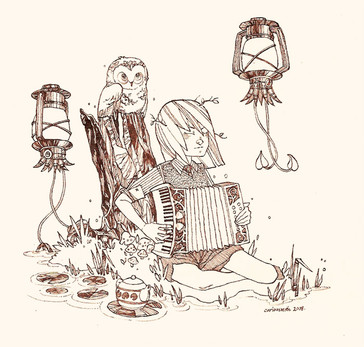 That's great how you've let the colour get out of the characters' lines. That creates somehow "flowing" feeling. And I just love how you've done the girl's (hmm, well at least I think that the character's a little girl :3) jacket. The big leaps between jacket's shadows and lights look good.