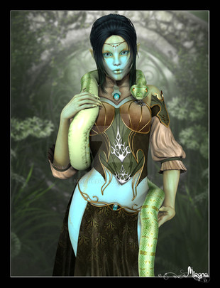 It's bewitching, really! Nice pose, love the scales, and the girl's lips and eyesnare very well done.