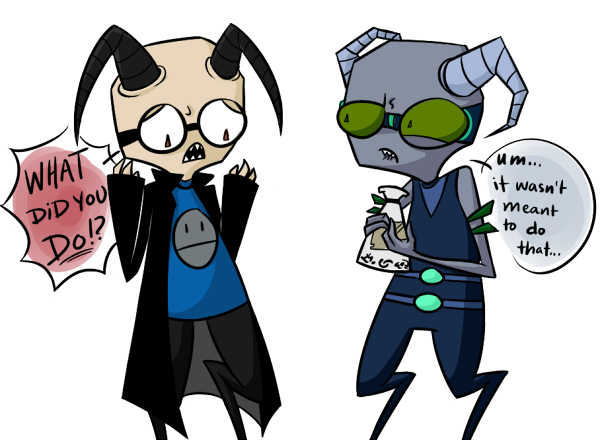 Er yeah.Mini comic sort of thing with Derp and his Irken guard. Who has a name now! I've been calling him Squish in my head (on account of his eyes are all squishy) and Rapps liked it enough to make it official XD