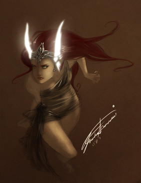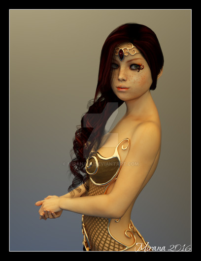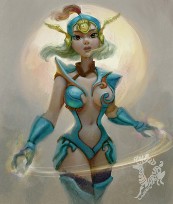 Wow I love her design! Specifically her face. I love how you combined these big anime-like eyes with a realistic painting style. It looks amazing! And of course the armor looks awesome too! It is certainly something I would love to try on!