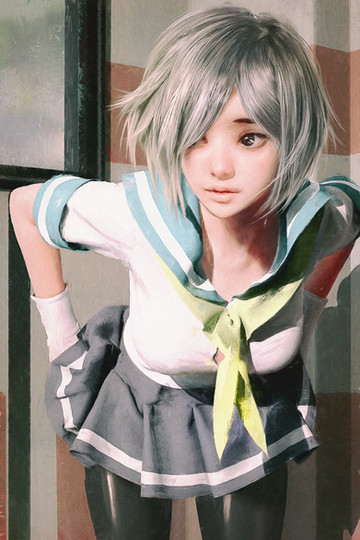 Your colouring here makes the scene look almost real I think the only thing that cuts that impression is her cute anime face ^^