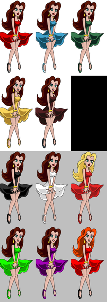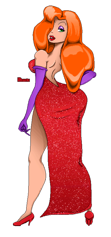 I made sprites of Jessica Rabbit with different clothes, standing and sitting.Row 1: Usual dress.