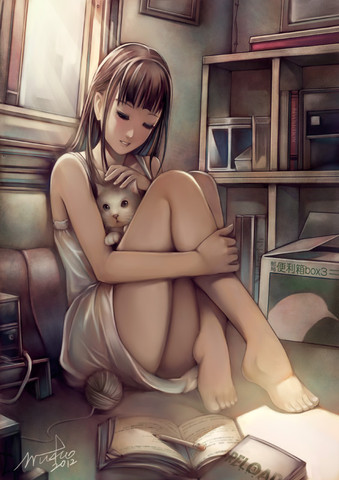 The wrinkles on the shirt are really interesting... But the lighting on the book and her arm are amazing. So bright and convincing!