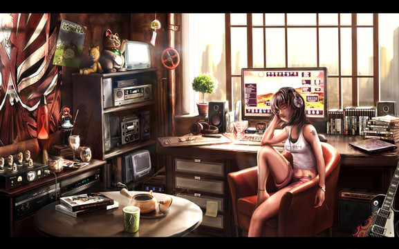 Such an amazing work! It has a calm feeling in it. I love the Bg, especially the old radio. Great combination of colours.