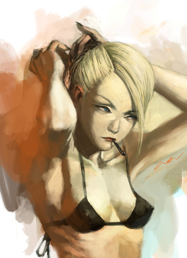 I particularly like the colour of her hair here - it annoys me when people do her hair in an orangey colour. I like your style, and the lighting.