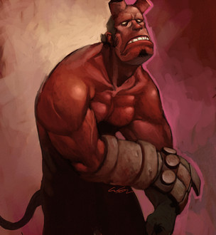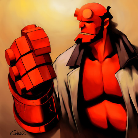 love the fact that you made hellboy's face look very monkey like..... i think that works=]