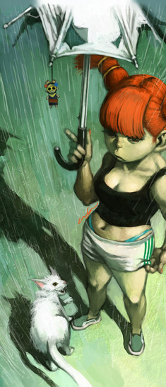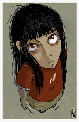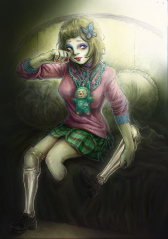 cute evil! The green-red-pink colorscheme fits great for the atmosphere (except for the pink skull tattoo).