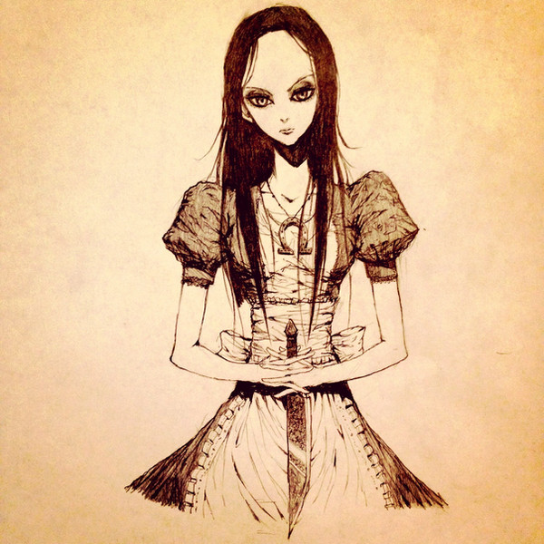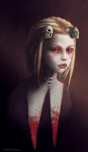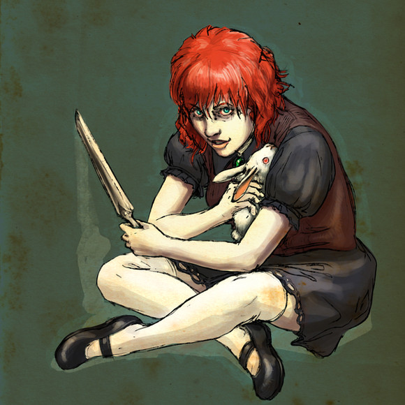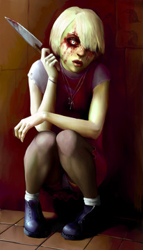 she realy dont look to healthy , anywai , she looks a bit like the the characte of Alice , its a game .