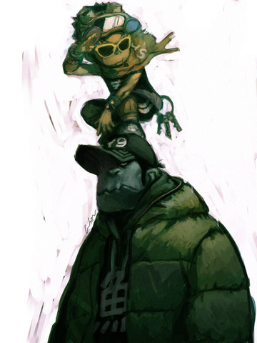 Amazing character designs; Really love the girls spiked hair and her expression. And the frog just looks like he is full of character