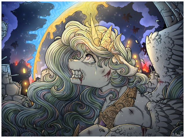 Well, technically the show never showed what happened to the changelings after they were blasted away, so this is just what I think happened! I know this kinda picture has been done quite a lot, but each one has it's own story to tell, each one coming from a different person. And of course DA still has creativity! Do you think all fanart has no meaning or creative influence what so ever or something?