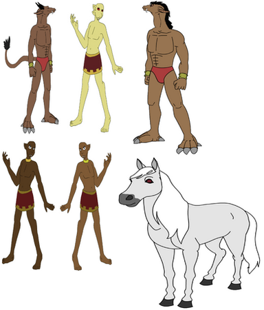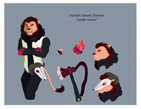 Also for context, these are the forms of Wrath, Pride, Lust, and Gluttony during the times of ancient Greece (hence the togas). I thought it would be neat to include more mythological creatures since they were used so commonly as embodiments of things. I think i'm actually going to stick with these designs for the most part. (Minus gluttony. I love love love him but I think the pig design would be more appropriate for the modern era.)