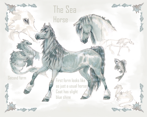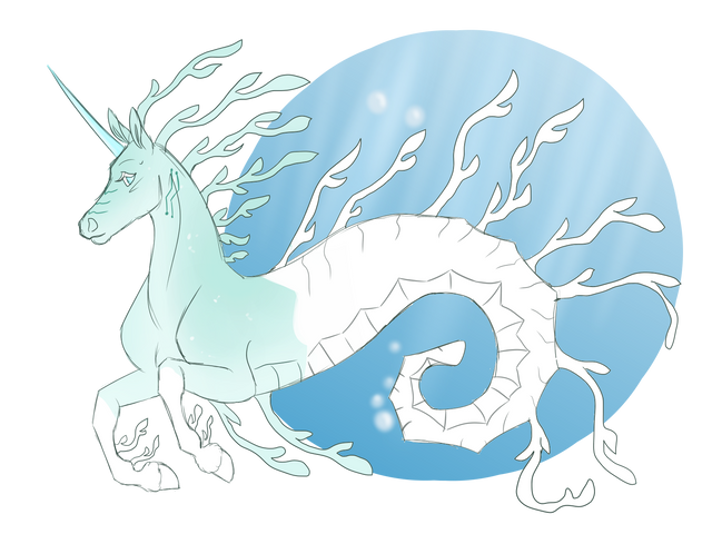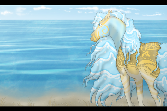 Charity heard the sound of hooves over the crackling flames and turned to see who was coming. It was a strange looking stallion with fins and a tail like a fish, his coat white like fresh snow, like the snow she had melted only moments ago. “Who goes there?” She said a