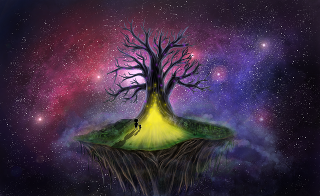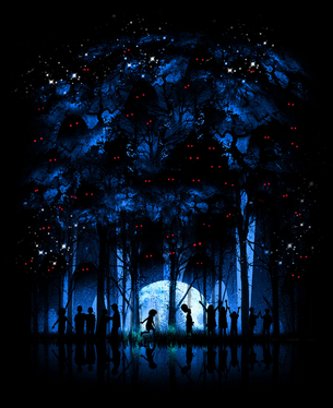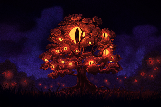 Wow, I love the atmosphere you've created in this image. I know everyone else already commented upon it, but it's true - the leaves on your tree have a marvelous glow to them that complement the look of the evil tree to perfection. I love how the stars peek in and out of the black tree branches too. So many subtle details working together to make a wonderfully unique Halloween picture. Well done!