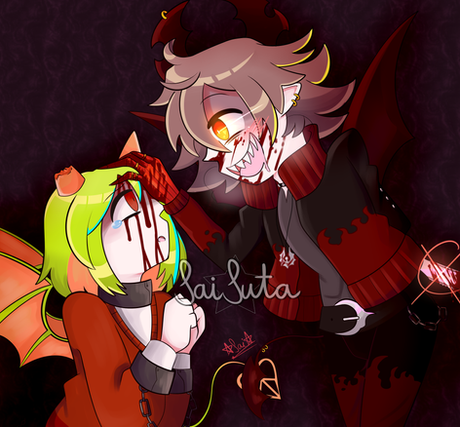 A Demon and her Hero. 😈🐐I haven't drawn anything Undertale related in a long time, so I wanted to draw Cocoa and Whiskey again.