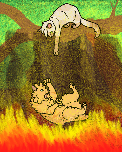 Who has the heart to break it to her that she'll only find dead beetles, rot and spider webs? Coming inland with humans has this cuttlepluff exploring all kinds of new things, but this time it's just an icky dead tree that apparently holds all the wonderful surprises in the world.(Sometimes I forget just how floofy Pebble looks because of how trim she is compared to the others!)