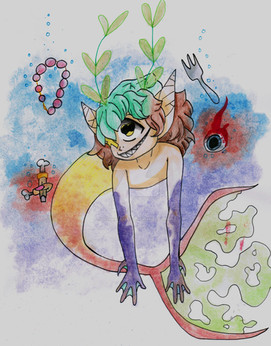 Here is a species of cuttlepluff that was just discovered this past August. Pyroclasts, if any exist beyond this specimen, are thought to be created by the specific circumstance of a pyroclastic flow meeting with a body of water beneath a summer's full moon, thus their rarity. They do not seem to exhibit the usual speed of a cuttlepluff and instead travel extremely slowly. An unsettling rise and fall of a buzzing sound combined with the sound of crashing waves or some sort of static can be heard as they move.Oddly, this one did not seem to have eyes when first discovered, instead bearing two patches of charcoal where eyes should be on other species. However once seeming to become fond of one of my fellow explorers, the specimen when next observed had eyes that could only be described as windows through which one could observe a specific part of the night sky regardless of time of day.
