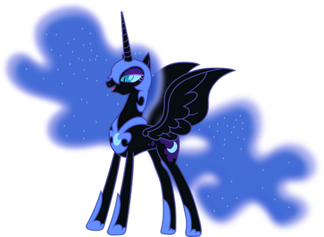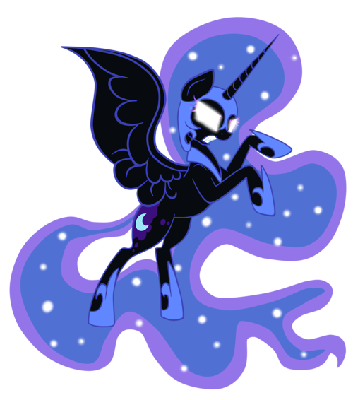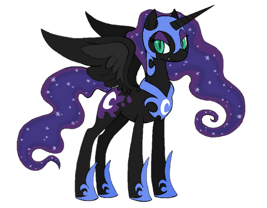 I really like the way you've done NightMare Moon's mane and tail (although the lack of stars is a little offputting). Her expression is most certainly full of a sense of heightened entitlement, as if to say, "You have what I want, and I HATE you for it".