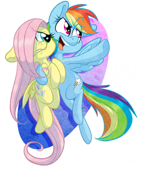 Fluttershy does look a little washed out next to Dash's more saturated colors. Maybe darken or intensify her outlines and eyes?