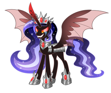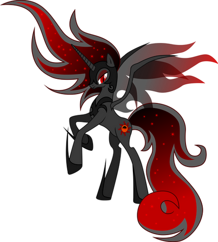 So cool and BELIEVABLE. That's what I like. The nightmare versions of these characters COULD exist IF something happens to them where some event traumatized them to the point where they questioned who they were inside and started going down a darker path after their faith in who they were shattered. Like for example, someone brought up the idea that with Cadence being the princess/goddess of love, what if say Shining Armor broke up with Cadence for some unforseen reason? Maybe Cadence in her grief will start losing faith in love and start believing that the love they had for each other was maybe infatuation (or in your case lust) and this triggers her Nightmare transformation. Seems too deep for a kids show huh? Who knows. Perhaps the writers could take a chance on this and make it happen. I'd be impressed if they do.