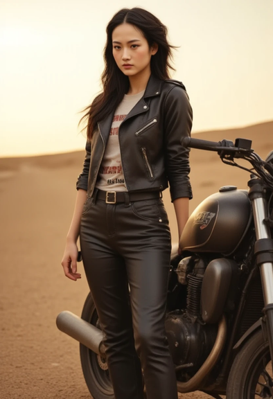 #beauty #leather #photorealistic #motorcycle #glamour #android #cyborg #robot #time_travel #science_fiction #artificial_intelligence #forever_alice