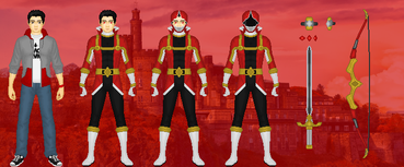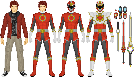 Neo Mighty Morphin Red Ranger: Chris King1ST ROW: Civilian, Uniform, Neo Ninjetti without mask, Neo Ninjetti Red