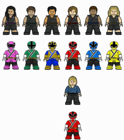 4TH ROW: Green Samurai Ranger (Forest), Pink Samurai Ranger (Sky), Blue Samurai Ranger (Water), Yellow Samurai Ranger (Earth), Red Samurai Ranger (Fire) (m), Gold Samurai Ranger (Light), Red Samurai Ranger (Fire) (f), Black Samurai Ranger (Darkness)