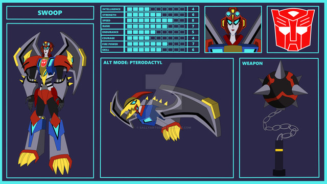 The redesign for Dinobot Swoop. I streamlined most of the original visuals & gave it a slightly more "organic" look. The transformation remained pretty much as it was.Related content