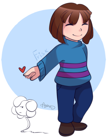 Sketch commission for RacerfanX >:3 lil Frisk wishes to battle