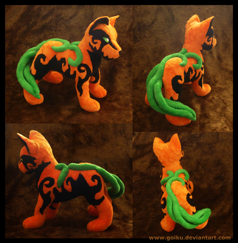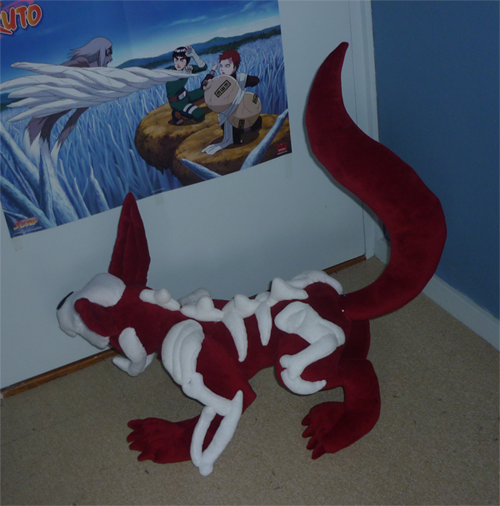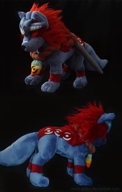 Just toying around with some quickly designed patterns. This blue fabric is low-quality so suitable to experiment with to figure out things like size, and the basic form. The actual plush will get a lot more facial structure since i'll be using foam for the inside insetad of stuffing only....and of course it won't be blue with makeshift paper teeth XD I'll prolly start on him once all the commissions are done.