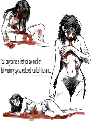 It looks like a deep kind of misconstrue the way whatmistakes and sin really are. Mistakes are something we all make day to day. And sin is the deliberate fault someone does by his free will knowing what he is doing but even that will be forgiven if someone regret. No mistake should ruin someone if even sins are forgiven by GOD. But I know: It´s just art. I was just starled that some could feel down like here is shown. If you know someone who is down like this please remember Jesus Christus!