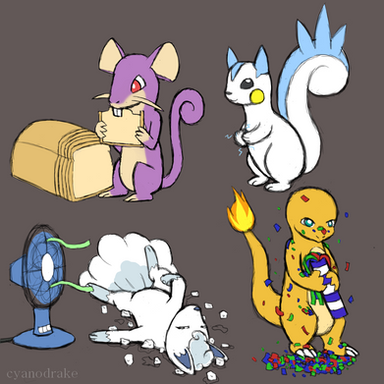 It's unusual for me not to draw pokemon fanart for this long.I didn't know how to make this interesting, so I asked my friends for random words, I got "bowl", "chair" and something else that would have got this drawing deleted by dA admins if I had included it. I love you guys.