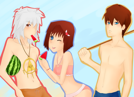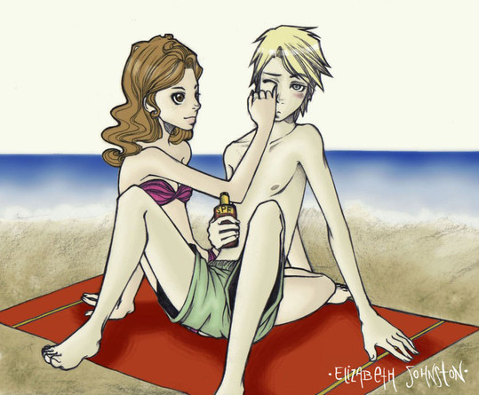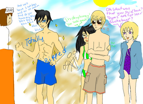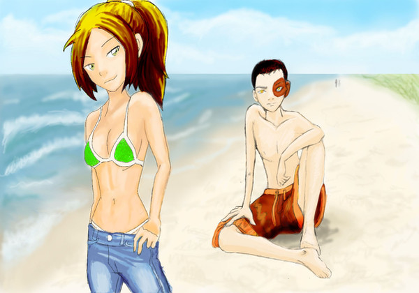 #beach #bikini #boy #emmett #fanservice #girl #natalie #sea #sexy #speedo #swimsuit #zp #zparasites #bishounen #palmtrees