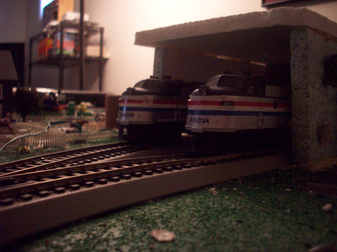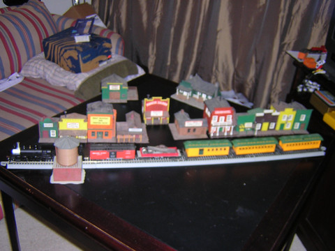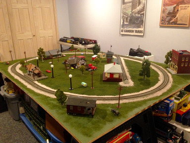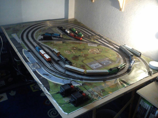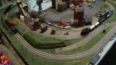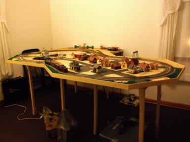 A photo of my model train layout. I built it all on my own. All the trains and cars are Bachmann HO/00 Gauge. I took the PhotoMore photos will be on here soon