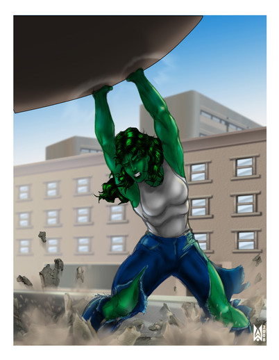 Yeah, the earrings... As I was looking for refs of her costume, I check the Marvel encyclopedia and there was mention of her having these earrings that tie into circuitry in her brain that boosts her sense of balance and allow her to be more agile. The only visual references for them came from the great Terry Dodson