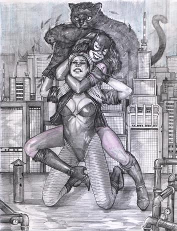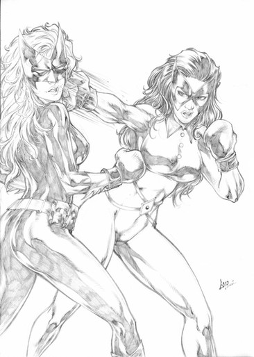 Working the pencil and paper for a change.I am doing a series of images for the term "Cat Fight."