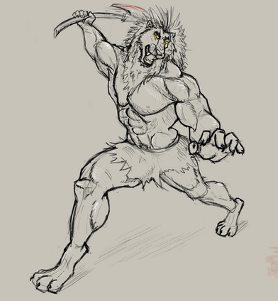 #anthro #fight #furries #furry #lion #pose #warrior #anthropomorphic #sketch