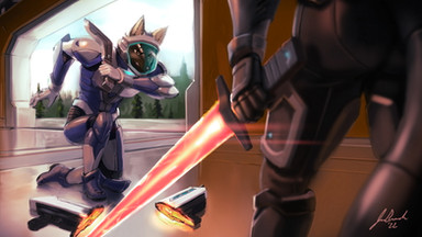 Space collab with my dearest friendIt was tons of fun to do, she made the background and I worked in the characters.