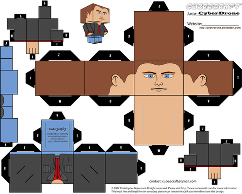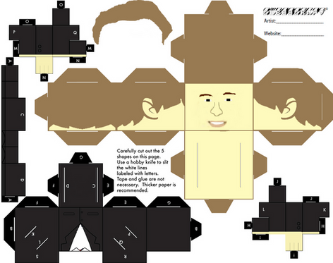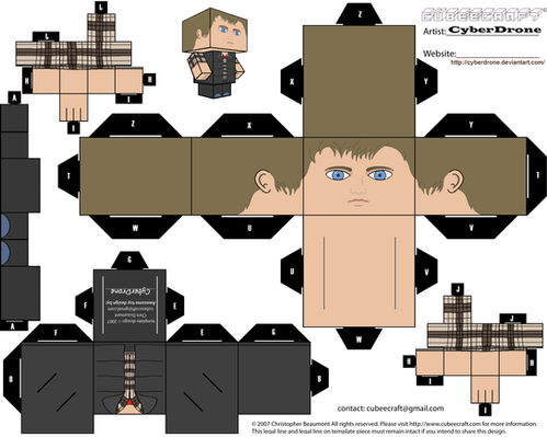 My Custom Cubeecraft / Papercraft Cutout template of Rory Williams (Version 1) who travels with the 11th Doctor and Amy Pond from Doctor Who.(All My Custom Fan Art Cubeecraft Templates are made on MSPaint. and The 3D illustrations on the free Gimp program.)
