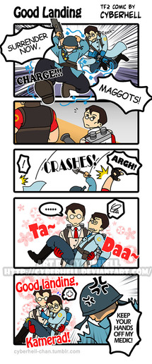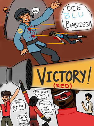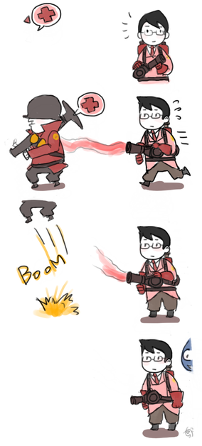 Even if Lil Engie managed to survive the fall, he didn't see one of the Solly's rocket launcher and tripped over it X'DDDSome ask reply for Lil Engie ask blog: lil-blu-engie.tumblr.com/