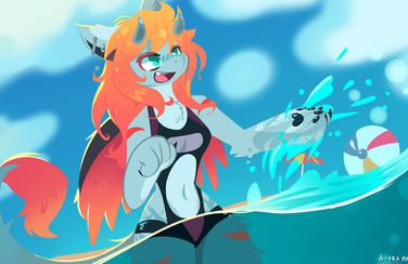 #animals #anthro #cat #character #digital #dragon #furry #furryart #fursona #halfbody #illustration #original #photoshop #pool #scalie #summer #water #commissiom #art