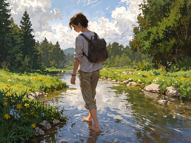 #digitalart #anime #aesthetic #atmospheric #barefoot #celshaded #countryside #dreamy #embankment #goldenhour #greenery #lofi #nature #nostalgic #outdoors #pastelcolors #peaceful #reflections #relaxing #river #serenity #softglow #stillness #summertime #sunlight #tranquility #water #wildflowers #ambientart #calmvibes